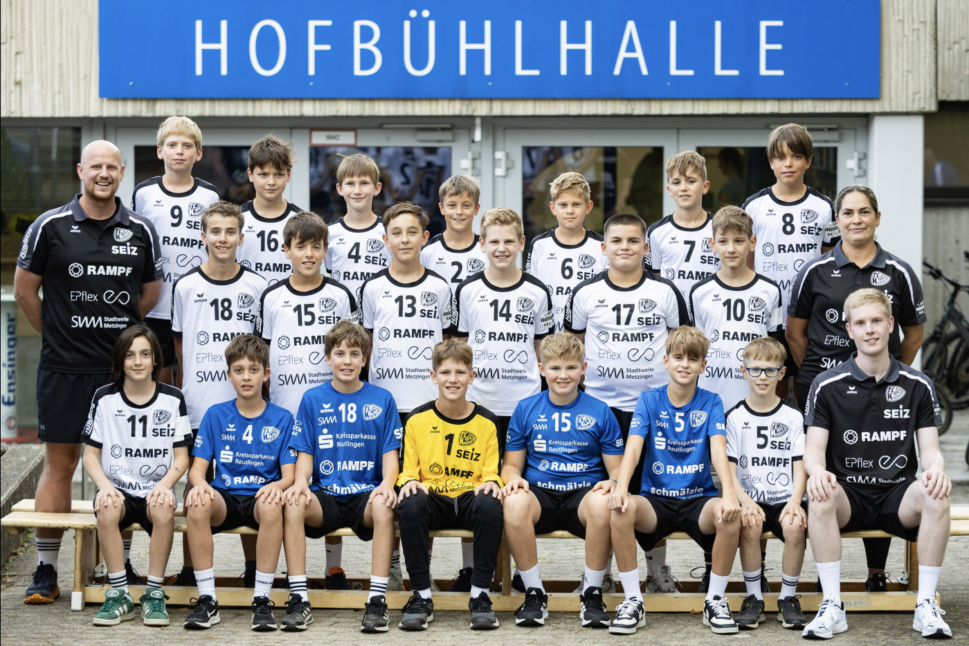 Mitte von links: Trainer Othniel Krampulz, Samuel Keppeler, Felix Schenk, Mats Janko, Ben Krampulz, Felix Grosz, Elias Hail, Trainerin Olga Grosz-Savanyu