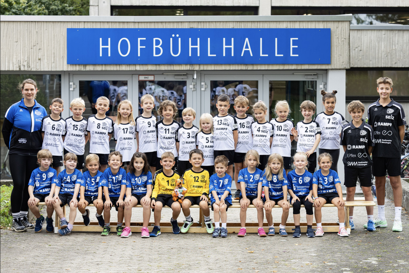 Hinten von Links: Trainerin Tine Reusch, Luka Crnkovic, Jonas Reusch, Leo Bertsch, Mila Muzyka, Mika Engelskirchen, Paul Binder, Lenard Weiblen, Marlene Bazlen, Francesco Pedatella, Oskar Hauff, Stella Zimmermann, Laura Koeltgen, Leo Knecht, Juna Traoré, Trainer Matti Ackermann, Trainer Piet John