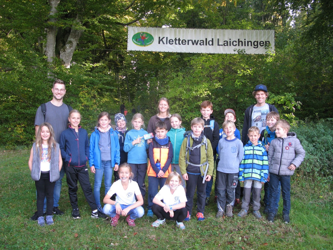 In Laichingen angekommen, ging es nach einem kurzen Fußmarsch in den Wald und einer kleinen Frühstückspause direkt los: den Kindern wurden Klettergurte angelegt und nach einer ausführlichen Einweisung mit Probeparcours konnte es schließlich losgehen.